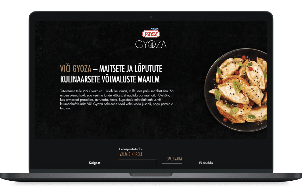 Leedu brändi Vici maandumisleht tutvustab turule tulnud GYOZA pelmeene.