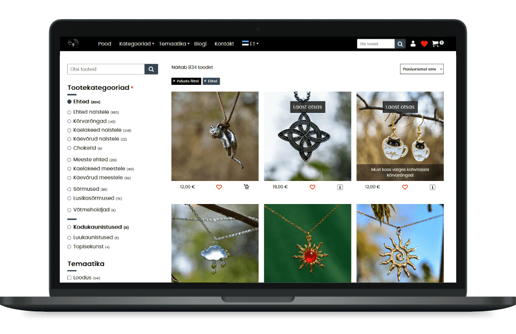 - Rätseplahendusena tehtud poefiltrid/otsing, toodete detailvaated